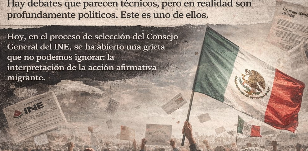 Hoy, en el proceso de selección del Consejo General del Instituto Nacional Electoral (INE), se ha abierto una grieta que no podemos ignorar: la interpretación de la acción afirmativa migrante.