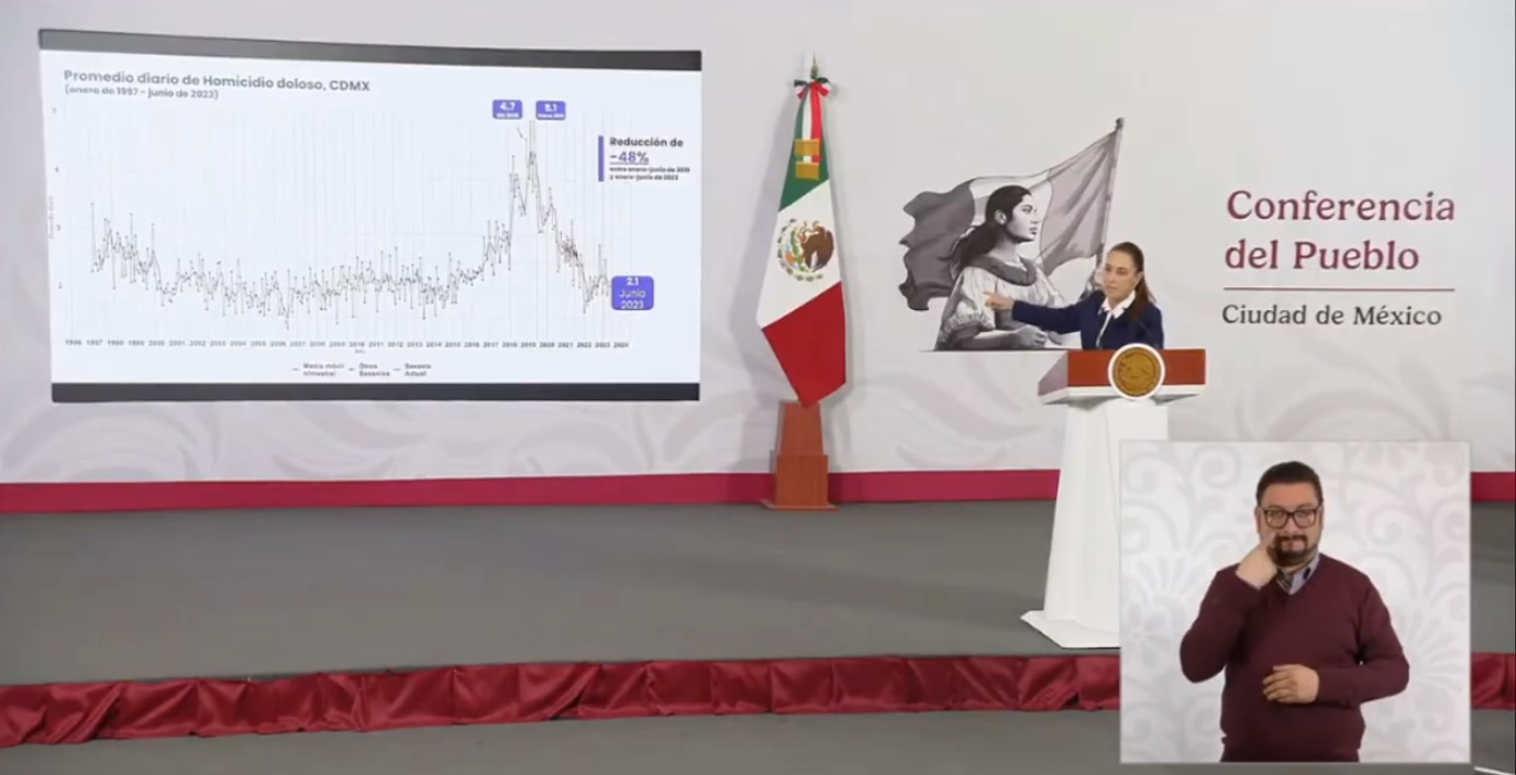 Durante la llamada Conferencia del Pueblo, la Presidenta realizó un análisis comparativo de la incidencia delictiva, tanto a nivel de Ciudad de México como federal, a raíz de que la estrategia es “del mismo equipo” que disminuyó la incidencia de delitos cuando ello gobernó como Jefa de Gobierno.