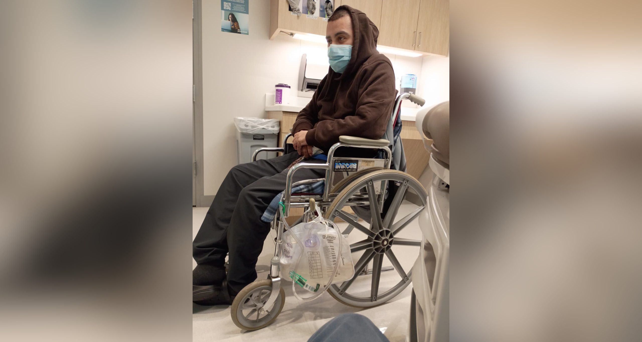 Ha pasado casi un año y hoy Jacobo depende de una bolsa de nutrientes que entra por su vena central. Permaneció seis meses postrado. No tiene seguro, ni carta notariada del gobierno, ni domicilio cercano al hospital.