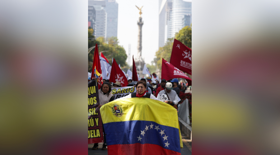 Durante la movilización denominada “Jornada Antiimperialista”, ciudadanos venezolanos y mexicanos cuestionaron lo que consideran “una política injerencista de Estados Unidos en América Latina”.