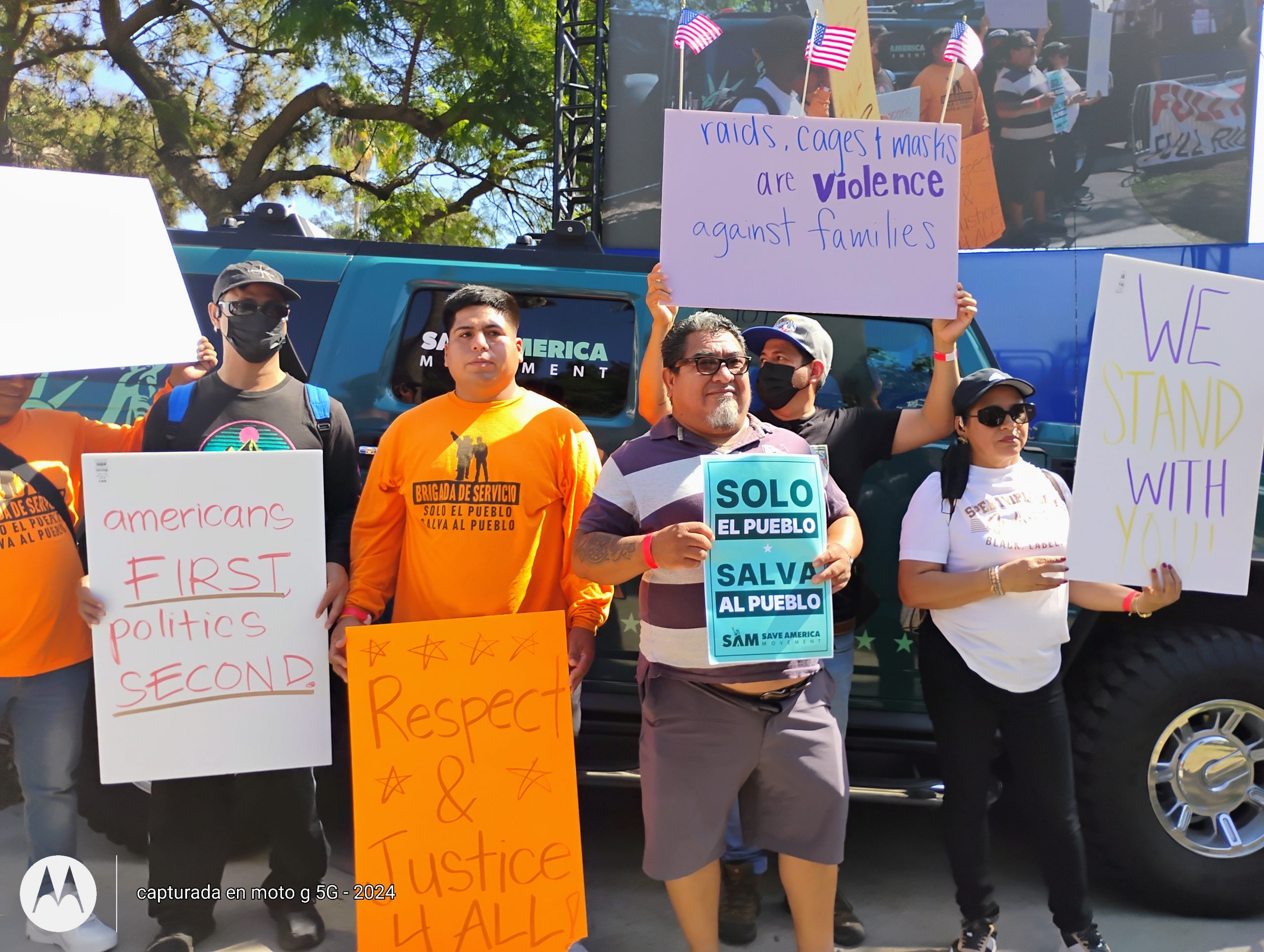 Los Ángeles, California. El movimiento “Save America” celebró un vibrante mitin en Los Ángeles, donde líderes comunitarios, activistas y ciudadanos alzaron su voz contra las redadas de ICE, las deportaciones y lo que describen como políticas autoritarias. Entre las y los participantes destaca la alcaldesa de Los Ángeles, Karen Bass y el diputado federal migrante del Congreso mexicano, Aniceto Polanco.