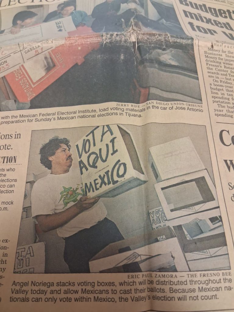 Justamente en ese 2000 recuerdo que hicimos un trabajo organizativo con algunos compañeros en el área de Fresno, en el Valle de San Joaquín donde radica más de un millón de mexicanas y mexicanos migrantes. En nuestra desesperación empezamos a hacer el voto simbólico, empezamos a hacer casillas porque ellos decían que todo salía muy caro. Nosotros les demostramos lo contrario.