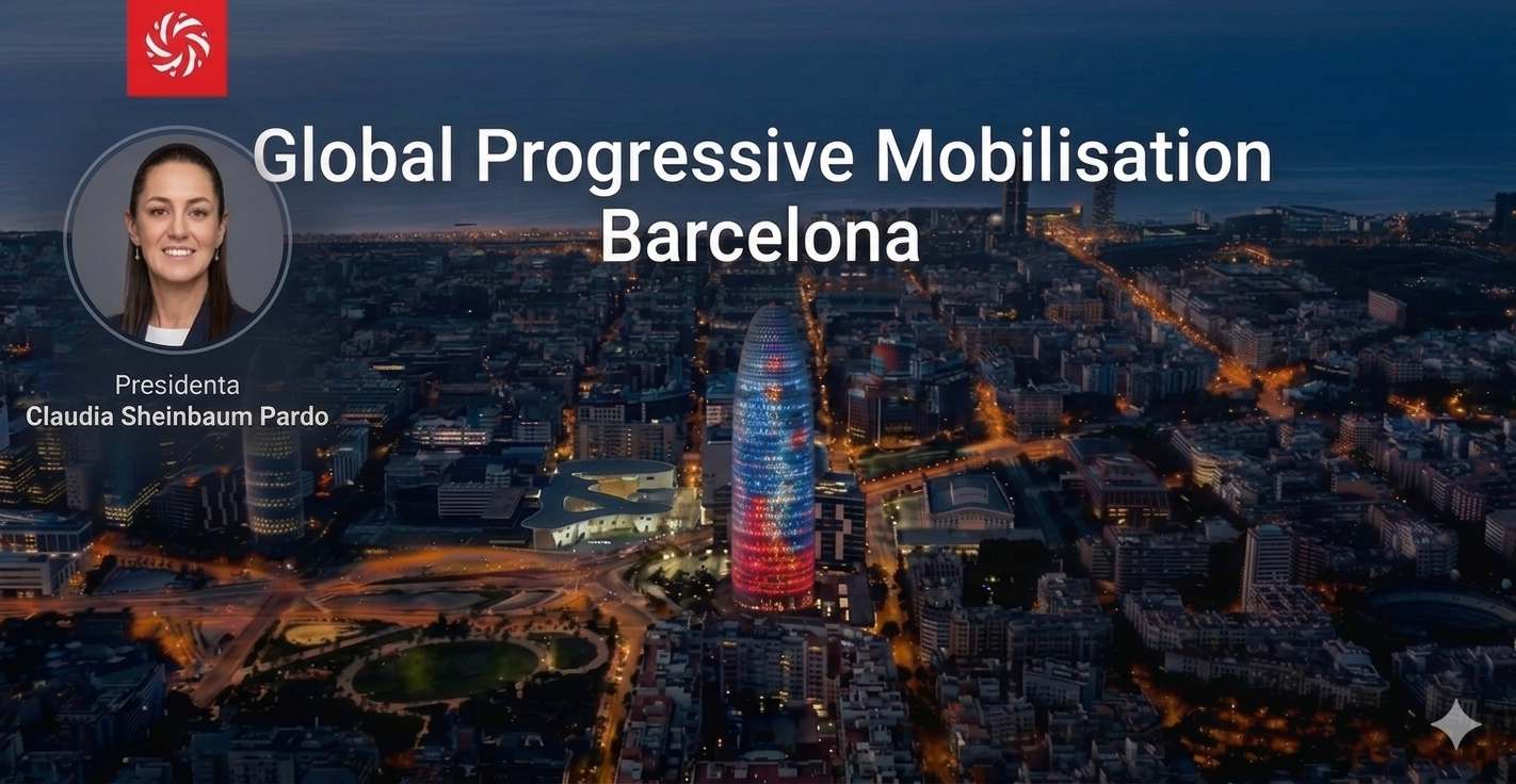 Barcelona, España. La presidenta de México, Claudia Sheinbaum Pardo, participará en la cumbre internacional “Global Progressive Mobilization” (Movilización Progresista Global) en Barcelona, a celebrarse el 17 y 18 de abril entrante.